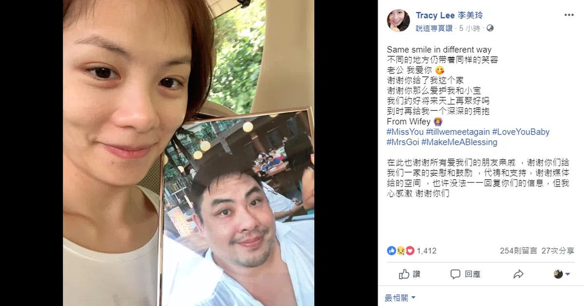 事后,李美玲也在面簿和Instagram上发文表达对丈夫的思念,希望他日在天上相聚时,丈夫能再给自己一个深深的拥抱。