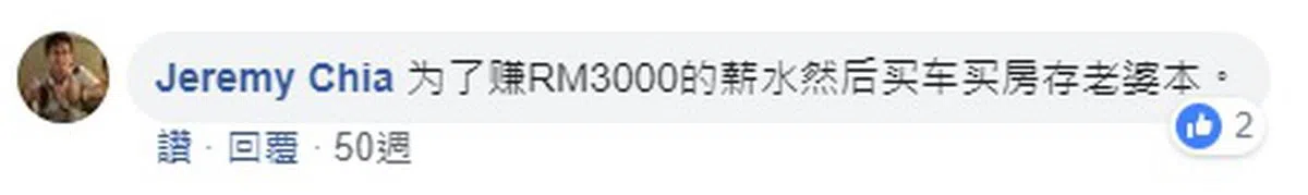 “为了赚3,000令吉(约1,000新元)的薪水然后买车买房存老婆本”