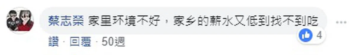 “家里环境不好,家乡的薪水又低到找不到吃。”