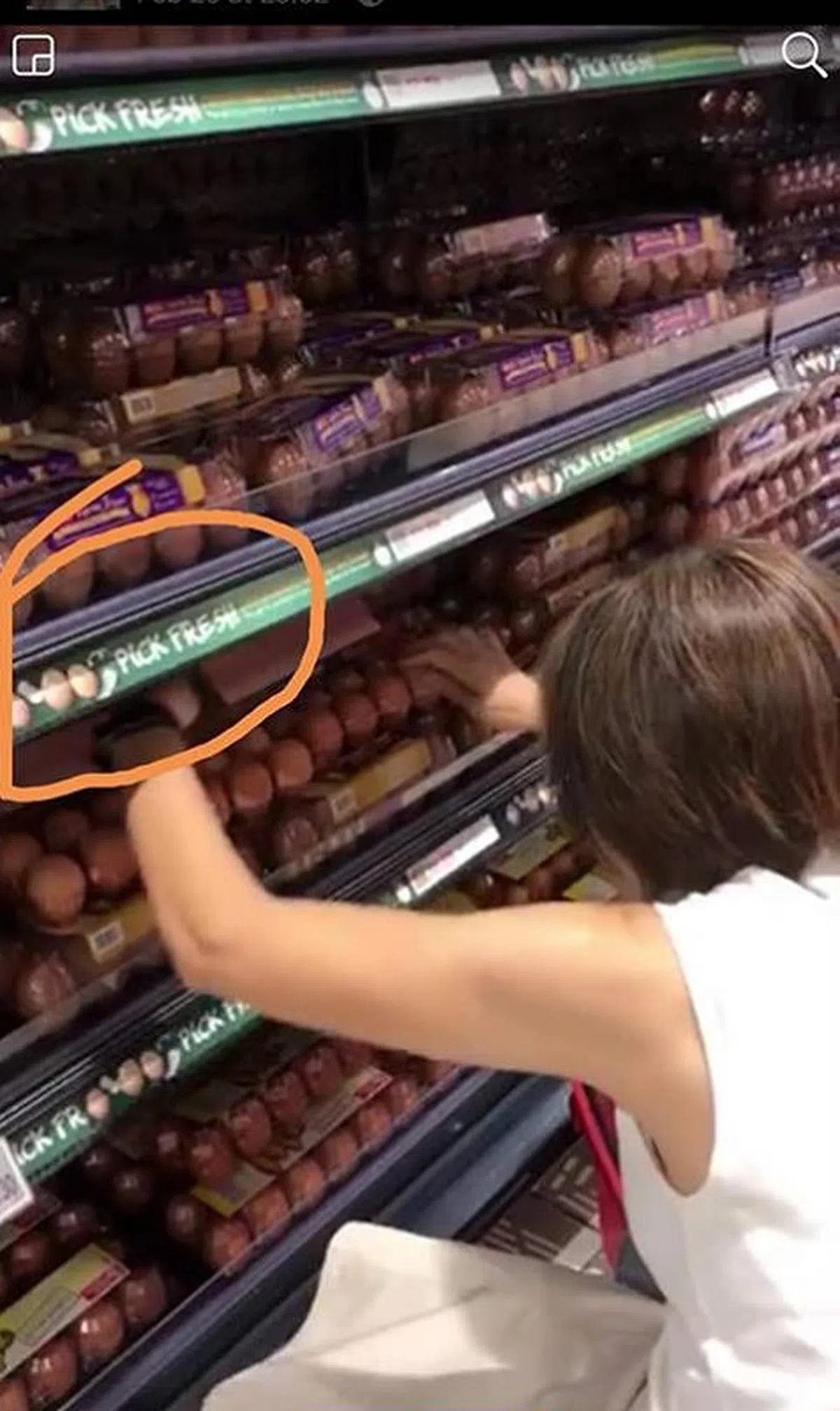 网友Jeremy是在这个星期一把以上的视频传上面簿,视频中,一名身穿白色上班服的阿嫂在超市内挑选鸡蛋。