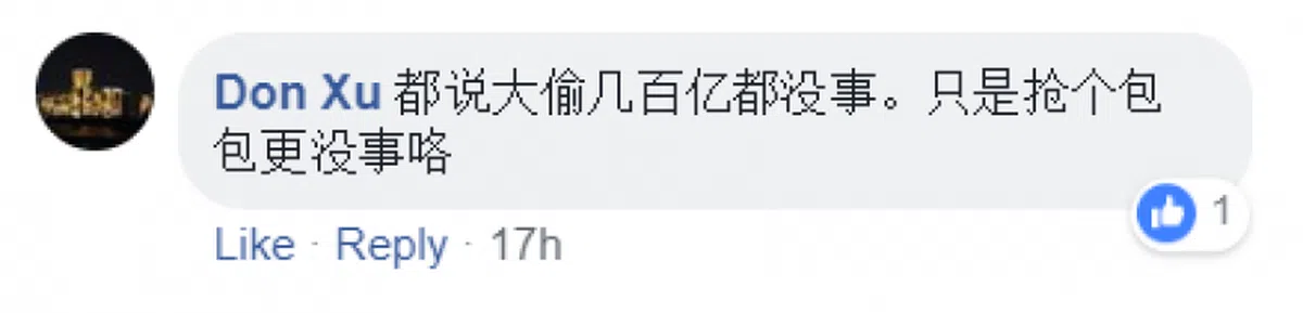 也有网民将矛头指向马国新政府,指马来西亚的治安近几年越变越差,估计被抢走的手提袋是找不回来的。