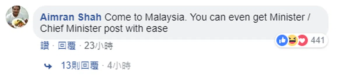 “来马来西亚吧,你甚至可以轻松当上部长或州务大臣。”