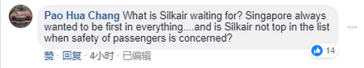 “胜安在等什么?新加坡总是什么都要当第一,当涉及到乘客安全问题时,胜安为何不当第一了?”