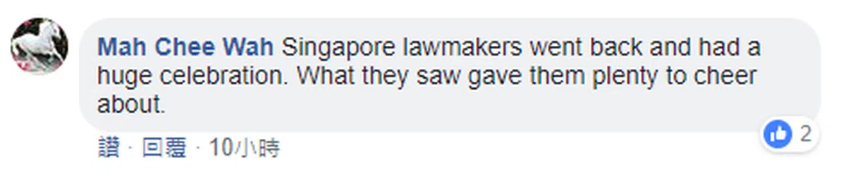 “新加坡的国会议员回去后会大肆庆祝。他们看到了可以让他们喝彩的场景。”