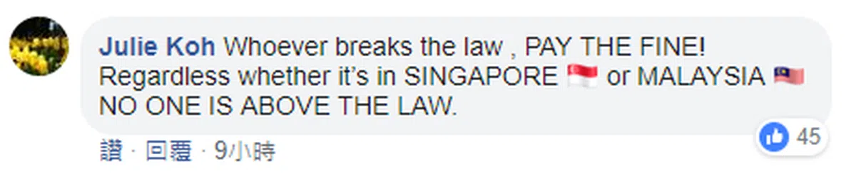 “谁违规,谁付钱!不管是在新加坡或马来西亚,任何人都不能凌驾于法律之上。”