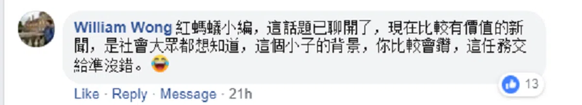 警方也征得男生家长同意公开他们的家庭背景。男生的父亲是公共交通司机,母亲是家庭主妇。(这回满足了大家的好奇心了吧,红蚂蚁只希望家人不会因此无辜遭网民起底)