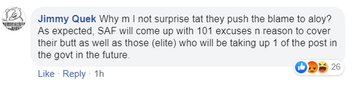 这位网民说,他们把错推给了冯伟衷,为什么我不意外?早就料到,武装部队会拿出101个借口和理由来保护自己和那些精英,这些精英以后会在政府里当官。