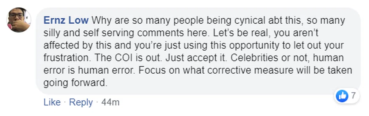 这个说,为何那么多人质疑这起事件?这么多愚蠢的评语。面对真相,你并不受这起事件影响,你只是利用这个机会发泄不满。独立调查委员会报告出炉了,就接受吧。是不是名人都好,人为错误就是人为错误。向前看,专注在加强防范和补救措施。