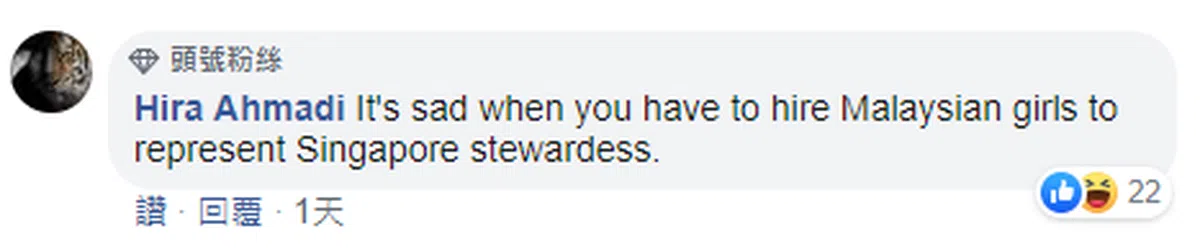 “当你必须聘请马来西亚女孩来代表新加坡空姐是悲哀的。”