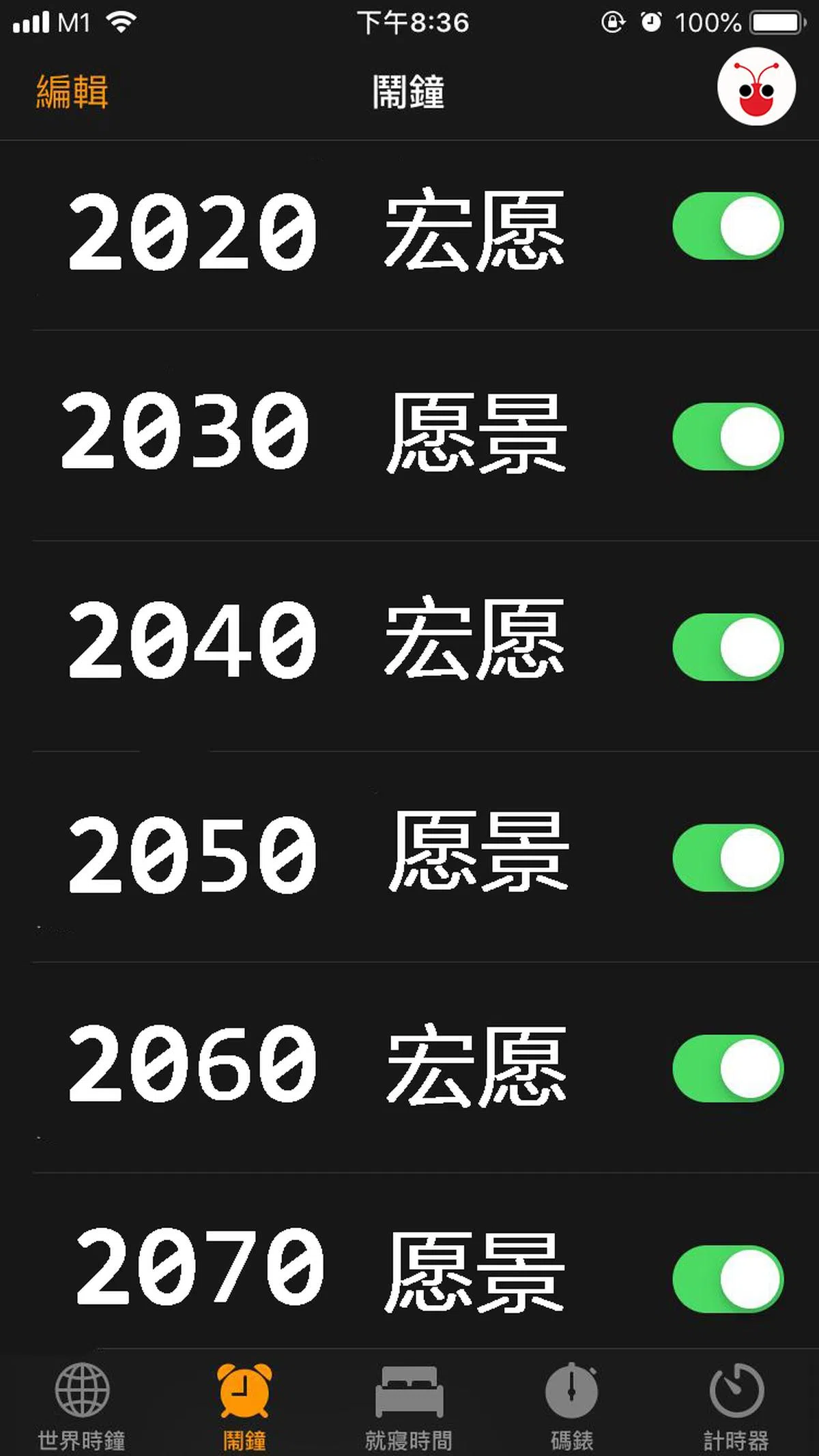 2020年无法达到,就再提一个2030年的目标来取而代之吧!红蚂蚁想起自己每天早晨赖床的习性似乎也有向老马“致敬”的一丝意味。闹钟7点响了,但7点起不来,那就8点起床吧,再起不来就9点吧!最后,手机的闹钟设置最后往往会变成这副模样……
