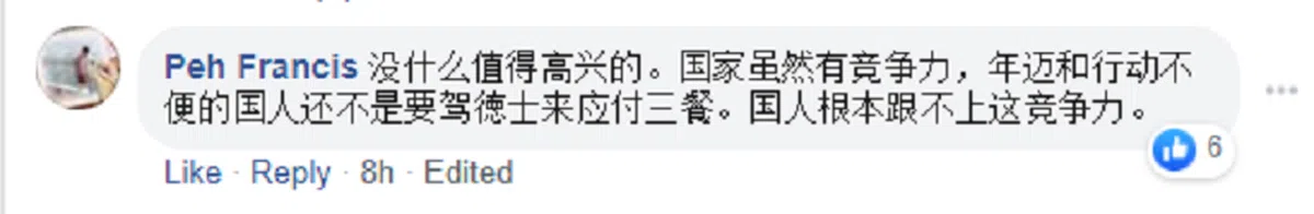 也有人说,国家虽然有竞争力,但国人没跟上步伐,贫富悬殊还是很大,行动不便的老人家为了三餐硬着头皮开德士。