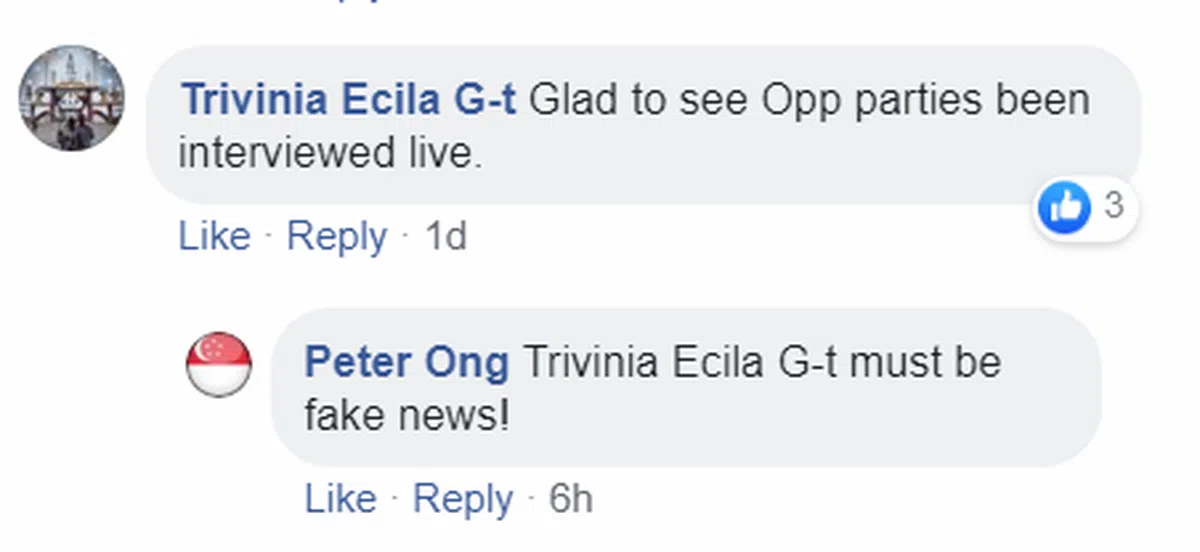 网民:“很高兴看到反对党接受现场采访。” 回复:“一定是假新闻!”