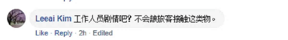 “一般上,台上的访客发现有大蟒蛇时,都会露出‘怕怕’的表情,但接着都愿意同蟒蛇拍照。我从没看过像视频的女游客(Jamie)那样剧烈的反应。”
