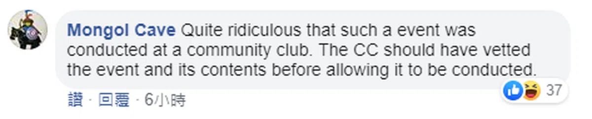 “这样的活动居然在民众联络所举行是极为荒谬的。民众联络所应该事先审查活动性质,才允许相关活动举行。”