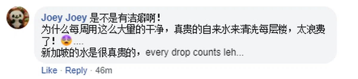 有人认为阿嫂每月洗四次,再加上清洁工洗一次,非常浪费水。有位网民甚至做负面联想,认为阿嫂有洁癖,清洁只为满足自己。