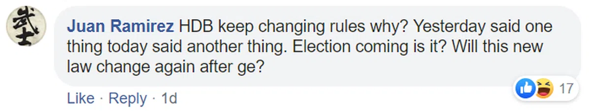 在非常时期,网民们似乎都能从各种政策中揣测出政府的用意与用心。下面这位网民说:建屋局条例整天变来变去,昨天说一套今天做一套。大选要来临了是吗?这项新条例会不会在大选后又改变?