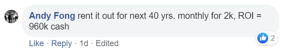 也有读者给出实际建议。别管政府组屋最终的价值是不是归零,如果公积金户头有多余的钱,不如买个位于成熟区的老龄组屋,把它出租40年,每月赚取2000元租金,就能稳稳进账96万新元,不失为一种养老投资。