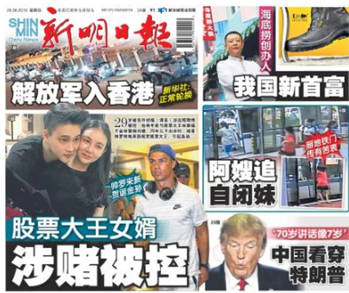 无独有偶,他的女婿许斌楷(译音)今天也登上了《新明日报》的头版,但不是什么光彩事。