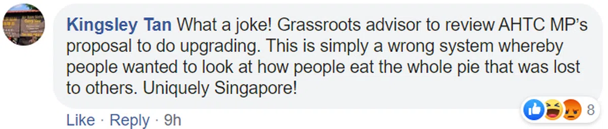 “简直开玩笑!……这样的系统绝对有问题,输给他人的那群人,还要站在一旁看着赢的那方如何吃下整个馅饼。非常新加坡!”