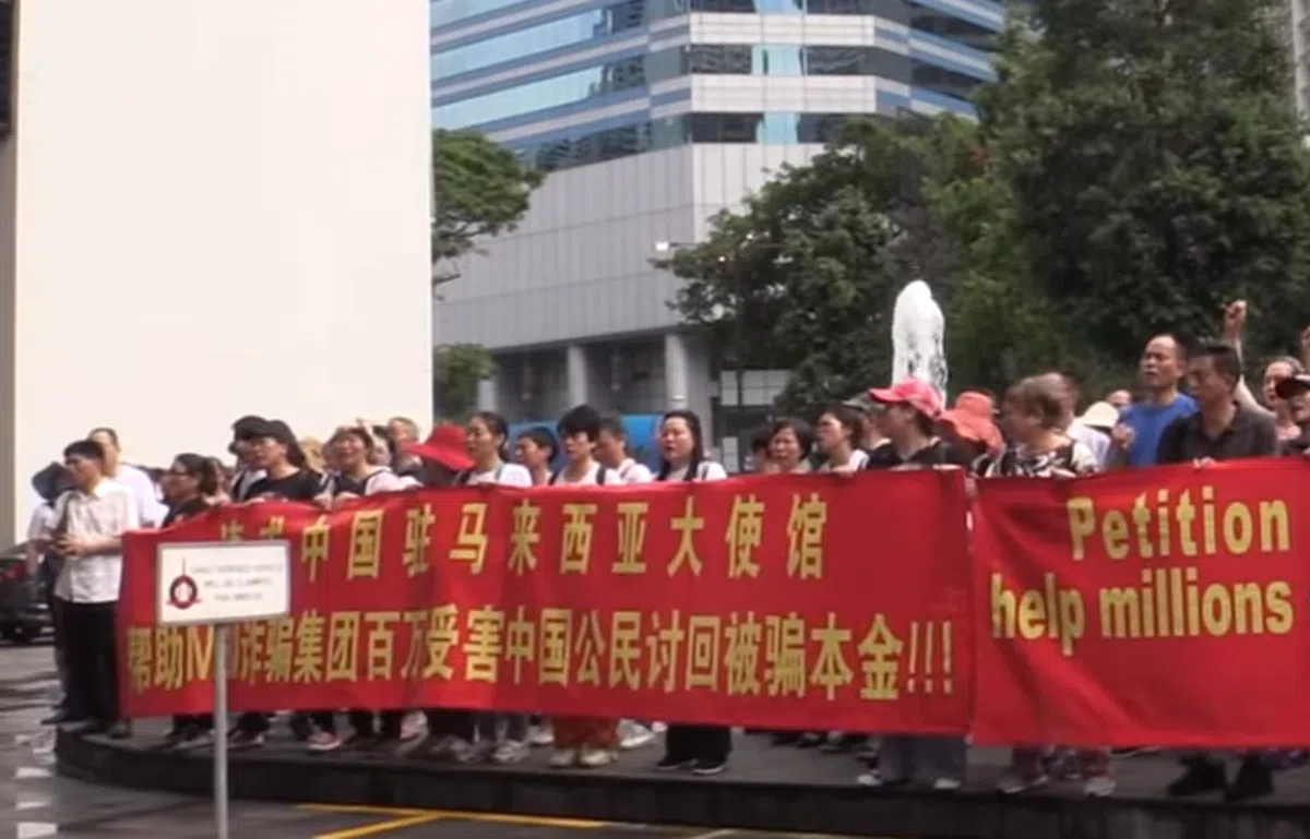 昨天(10月17日)上午,超过100名自称受到某马来西亚金钱游戏传销投资公司欺骗的中国受害者,抵达马来西亚首都吉隆坡的中国大使馆外,齐齐跪倒一地哭诉,要求使馆帮忙寻回被骗走的几千亿资金。