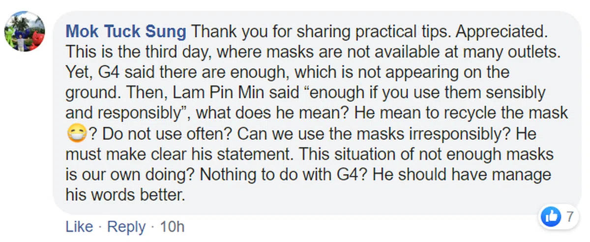 “大家早啊!你们当中有些人从事的工作需要面向很多人——服务业、销售、询问台、开计程车或私召车,难免会担心‘招惹’到武汉肺炎病毒。你也想要保持安全,但是……却又买不到外科手术口罩。(怎么办?)”