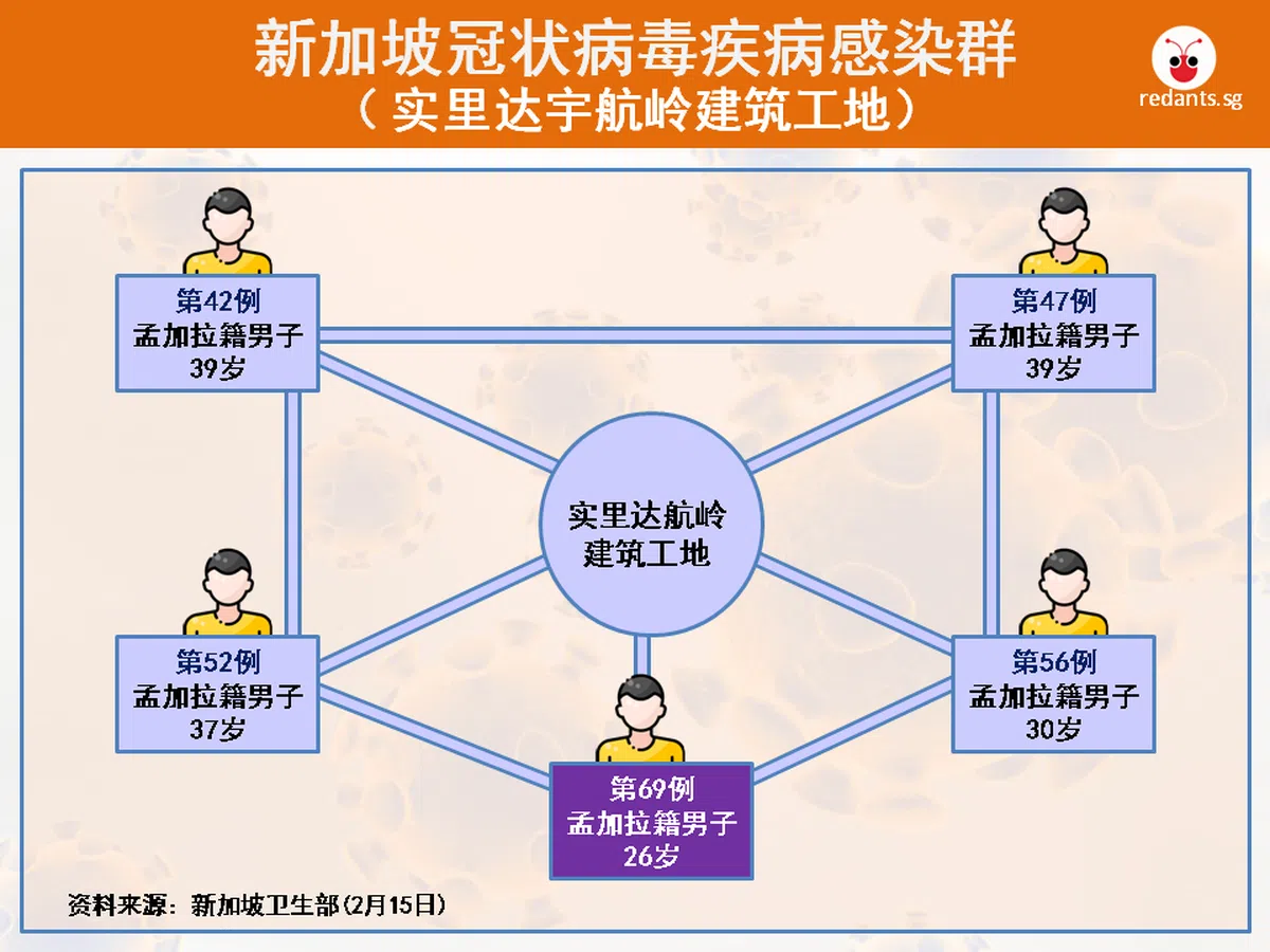 实里达航空岭工地感染群(Seletar Aerospace Heights)是本地五大感染群之一,截至昨日(2月19日)共有五人被确诊患上2019冠状病毒疾病(简称冠病19)。他们均是在我国打工的孟加拉籍客工,近期都不曾去过中国,目前仍不清楚感染源头。