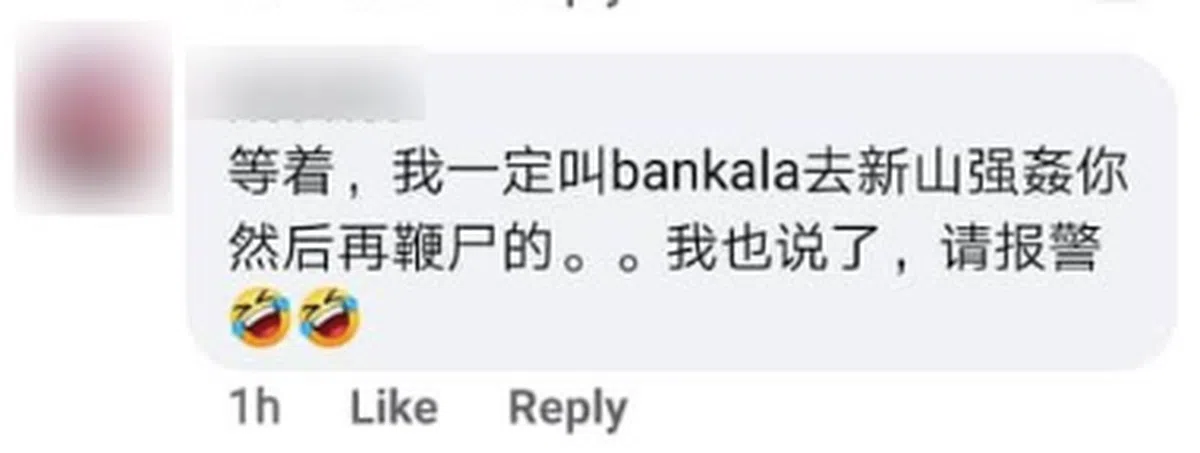 这段话随后引来一些持反对意见者的留言攻击,但部分网民显然并不打算理性探讨课题,除了直接留下“吃屎啦你”这类恶意攻击言论,甚至有一名男性网民写下“现在我去新山去强奸你……你绝对不要逃,我会找到你”的恐吓字眼。