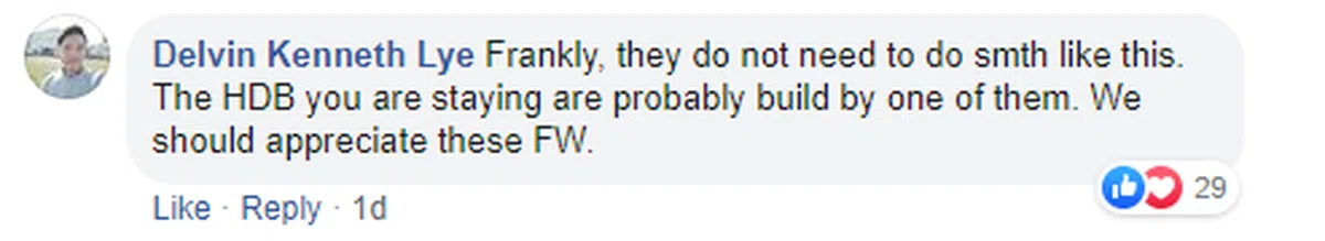 也有网民说:“他们其实不需要这样做。我们所住的组屋可能就是他们其中一人建的。感谢他们。“