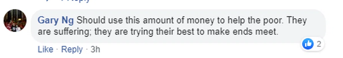 只有一两个网民认为我国正面对经济衰退以及冠病疫情带来的冲击,应该把这笔庞大的竞选费用花在更有意义的地方,例如帮助有需要的人渡过难关。