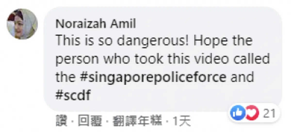 “这好危险!希望拍摄者有通知警方和民防部队。”
