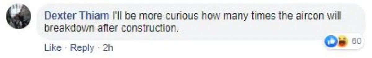 也有网民调侃到,不知道冷气系统在建成后会故障几次。试想想,如果冷气故障,大家是不是就得在密不透风的人行道走动呢?那真是叫苦连天啊!
