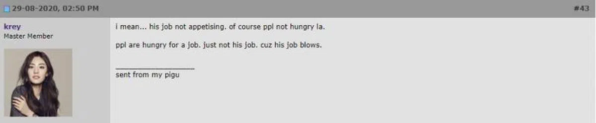 林子轩在8月29日上载了上述贴文后,又在另一则贴文中分享他面试七名年轻求职者的经历。这个职位开出月薪3000新元以上、年假14天。