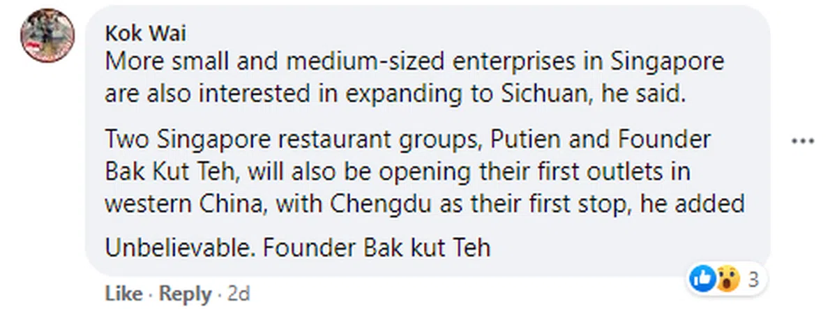 “我们遗憾地宣布,发起人肉骨茶位于武吉士的分店将从2020年10月1日起关闭。 新加坡的饮食行业正在遭受重创,我们和许多本地餐饮企业一样,仍在苦苦挣扎。这是一个现实,并将继续如此。我们希望与新加坡团结一致,战胜疫情,同时也珍惜所得到的所有支持。” 发起人肉骨茶接着解释说,关于他们在成都开设店面的宣布,那是以特许经营的模式来进行。协议早在一年前,即2019年(冠病疫情前)就签署了,原定于今年年初开业,但受冠病疫情冲击,这个计划被推迟至近期才落实。 “我们希望澄清的是,这个特许经营模式得到了我们中国合作伙伴的全力支持。我们非常感谢我们的加盟商仍然愿意继续履行承诺,我们也希望我们的品牌在进入中国市场时能够取得成功。”