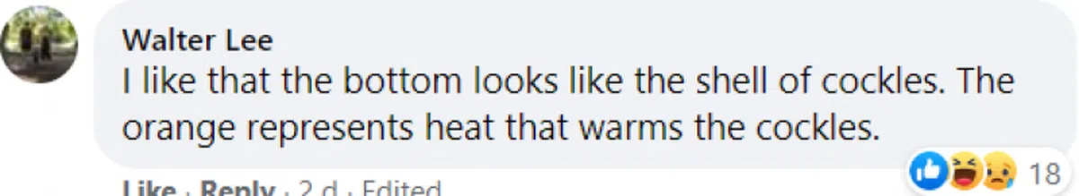 有细心的网民指出,那个蓝色河水的部分的线条看上去就像是蚶壳,上面的橙色部分刚好表现出蚶壳正在被加热暖暖的,与林志蔚的名言“心蚶一暖”不谋而合。