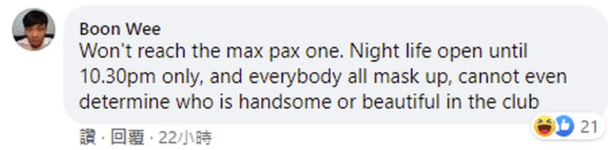 新加坡夜生活娱乐总商会也在昨天(9日)公布试行计划的相关细节,不过部分娱乐场所重开的消息显然没有让喜爱夜生活的派对动物们“嗨起来”,因为部分规定对他们而言实在有些光怪陆离或难以接受。