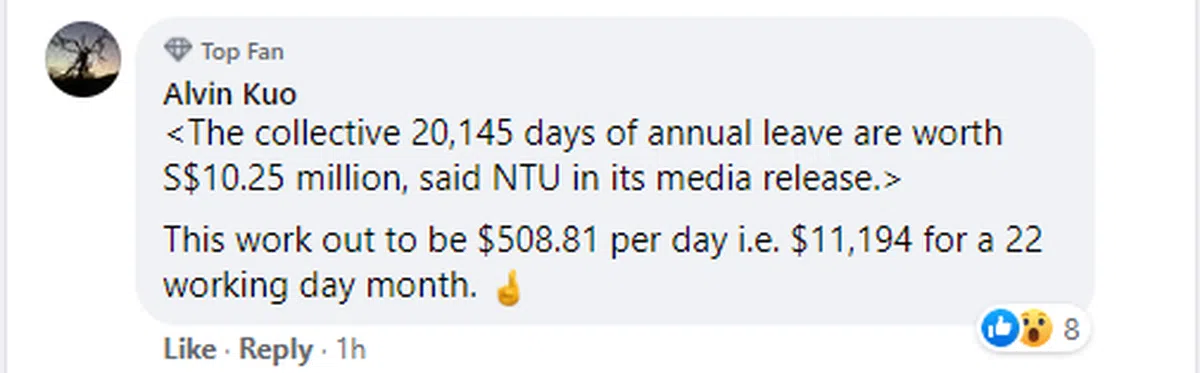 有数学好的网民计算出,平均每天年假能折现508新元,说明了捐赠年假的都是月薪上万的教职人员。因而有些网民认为他们既然有这个“赚钱”能力,当然可以这么做啦!