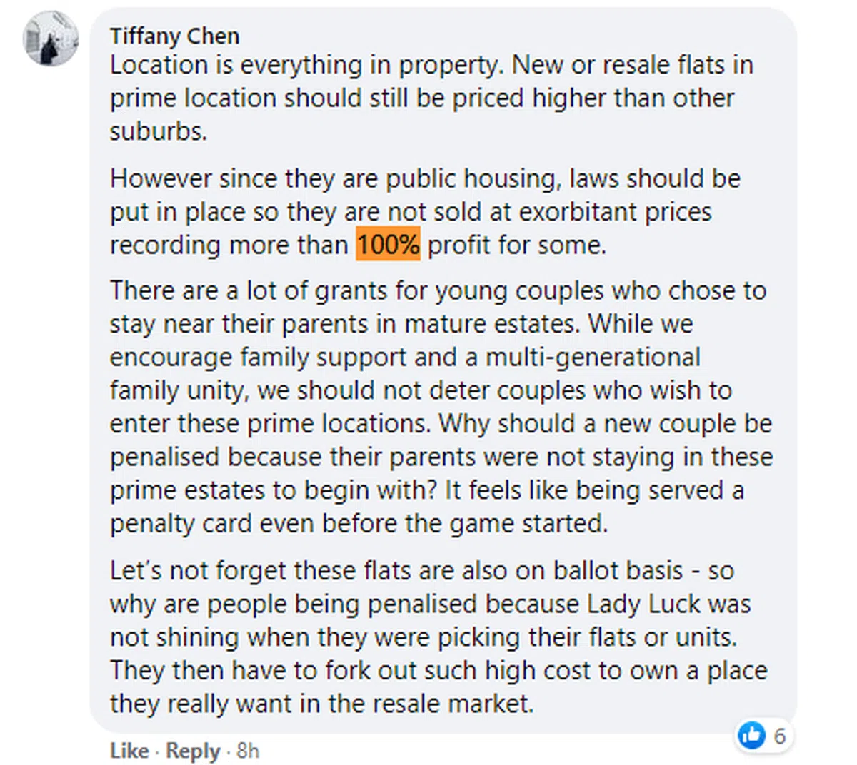 有网友认为,在房地产中,地点就是一切。位于黄金地段的预购或转售组屋的价格仍应高于其他郊区。