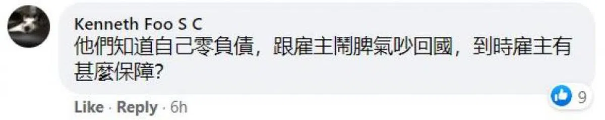 这名网民担心,若印尼女佣得知自己“无债一身轻”,会不会跟雇主耍性子,一言不合就吵着回国?届时,恐怕雇主真的欲哭无泪,成了冤大头。