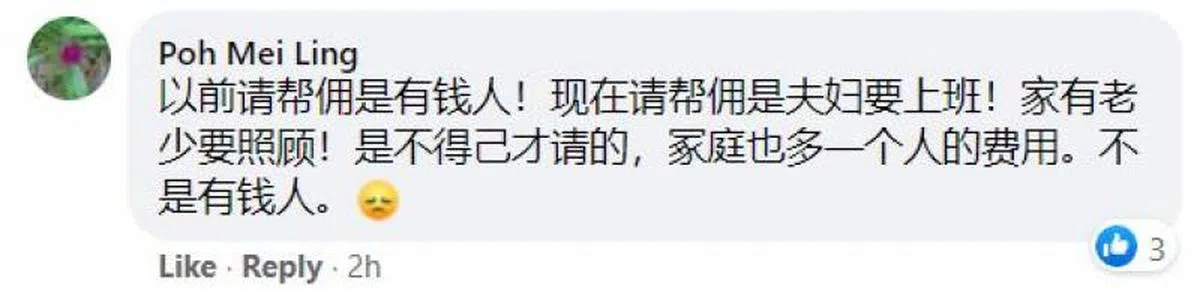 网民:必须请女佣的双薪家庭并非全是有钱人