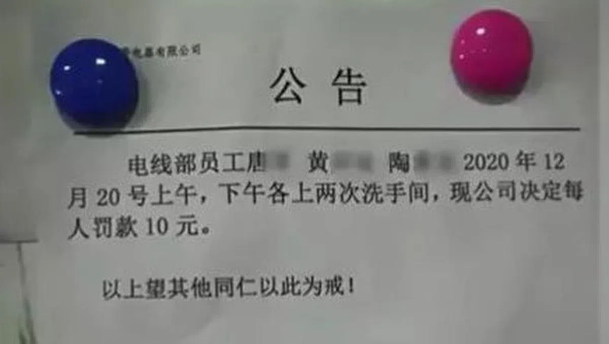 这并非中国公司首次被爆出奇葩的“限厕令”。