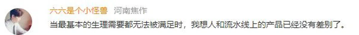“当最基本的生理需要都无法被满足时,我想人和流水线上的产品已经没有差别了。”