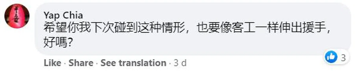这位网民认为,这样的好人好事比我们所知的还要多很多,自己就亲身见证过。这些外籍客工竭尽所能地帮助新加坡人,不求任何回报。