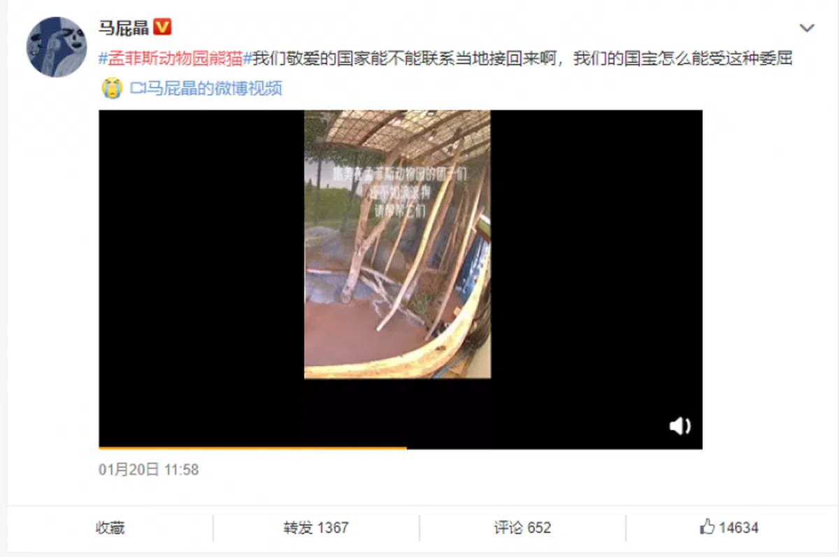 有网友1月19日在新浪微博上爆料称,美国田纳西州孟菲斯动物园(Memphis Zoo)的两只大熊猫丫丫和乐乐每天吃不饱肚子,瘦骨嶙峋,还疑似出现严重的“刻板行为”心理问题,即因感无聊和无助而反复作出一套动作。