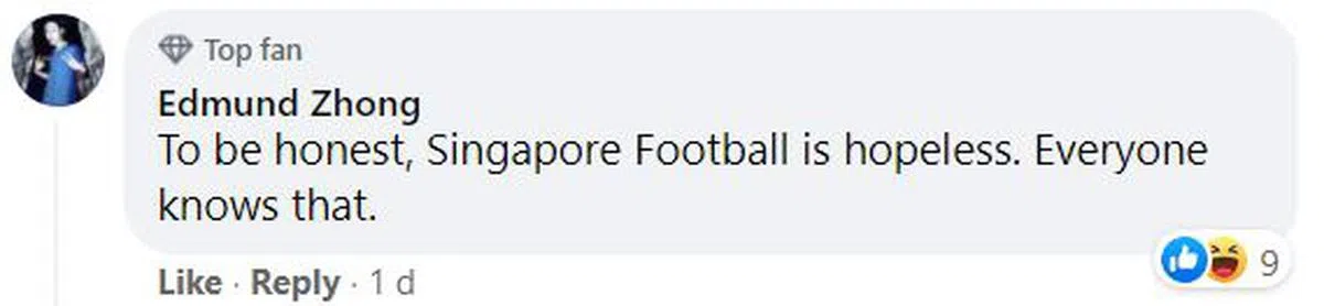 “说实话,新加坡足球是没有希望的。大家都知道。”