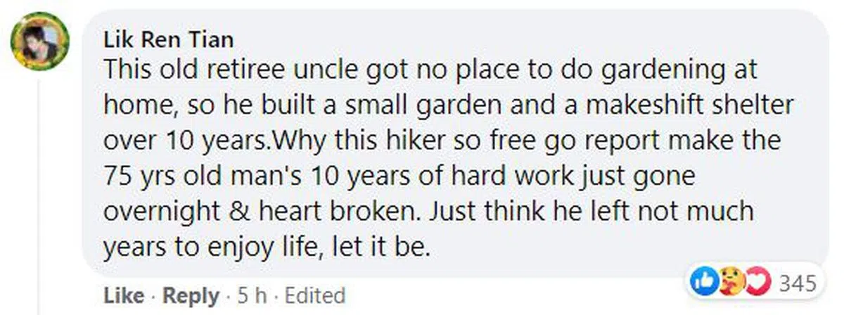 对此憾事,不少网民深表同情,希望土地局予以宽容,让吴先生过上安逸的退休生活,毕竟种植园是他的心血。