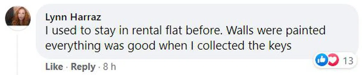 以下网民称她曾住过租赁组屋,拿钥匙交付时一切良好,就连墙壁都有重新粉刷过。