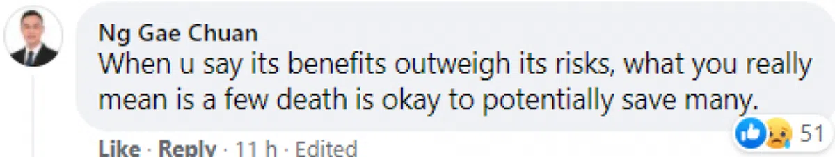 即使有卫生部出来澄清、疫苗专家团发声明、国家传染病中心辟谣,留言区中还是能看出,五名医生的公开信确实戳中不少家长心中最大的恐惧。但留言的人还是能比较理智地讨论,也提供了不同角度去看待所谓的风险。