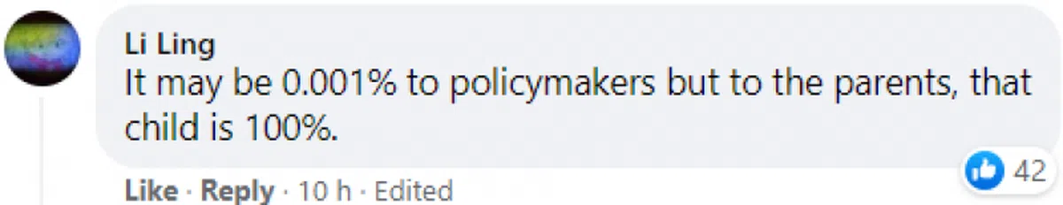 “在制定政策者眼里,或许只是0.001%,但在父母眼里,那名孩子就是100%。”