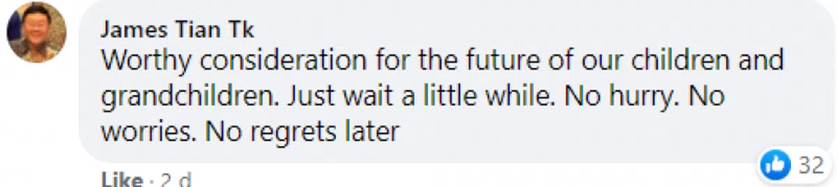 “为了我们的孩子和孙子们,(医生的呼吁)值得考虑(延后)。只是再等一阵子,没必要赶着进行,这样就不用担心,日后也不至于后悔。”