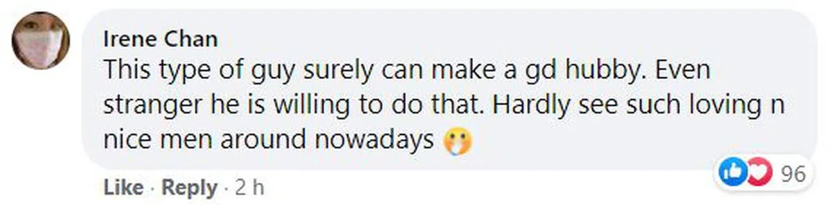 “这样的男人肯定是一个好老公的材料。就算只是一名陌生人,他也愿意尽力付出。现在已经很难看到如此有爱心的好男人了。”